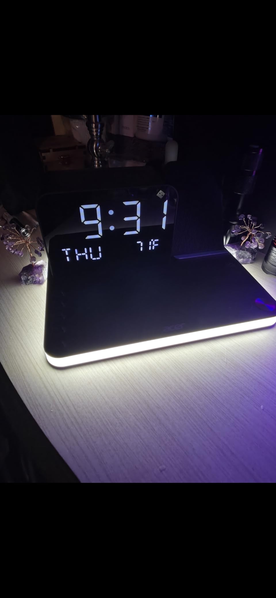 The time display is the exact size I would choose. I really enjoy knowing what temperature it is in my bedroom. Plus I get to fast charge both of my phones, tirelessly. I am in love with wireless on everything!